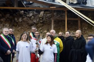 Fiaccola Benedettina, accesa a Norcia dalle macerie della Basilica di San Benedetto