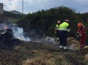 In fiamme sterpaglie e fieno nella Piana del Cavaliere, sul posto protezione civile e vigili del fuoco