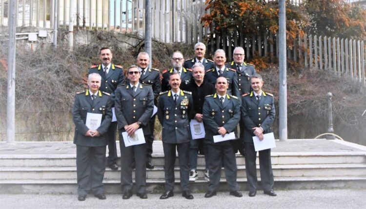 L’Aquila – Oggi presso la Caserma “Tito Giorgi”, il Comandante Regionale Abruzzo, Gen. B. Germano Caramignoli, alla presenza dei dipendenti Comandanti Provinciali, del Comandante del Reparto Tecnico Logistico Amministrativo Abruzzo e del Comandante del Reparto Operativo Aeronavale di Pescara, ha rivolto un indirizzo di saluto a n. 11 Fiamme Gialle prossime al congedo, in forza ai diversi Reparti della Regione.