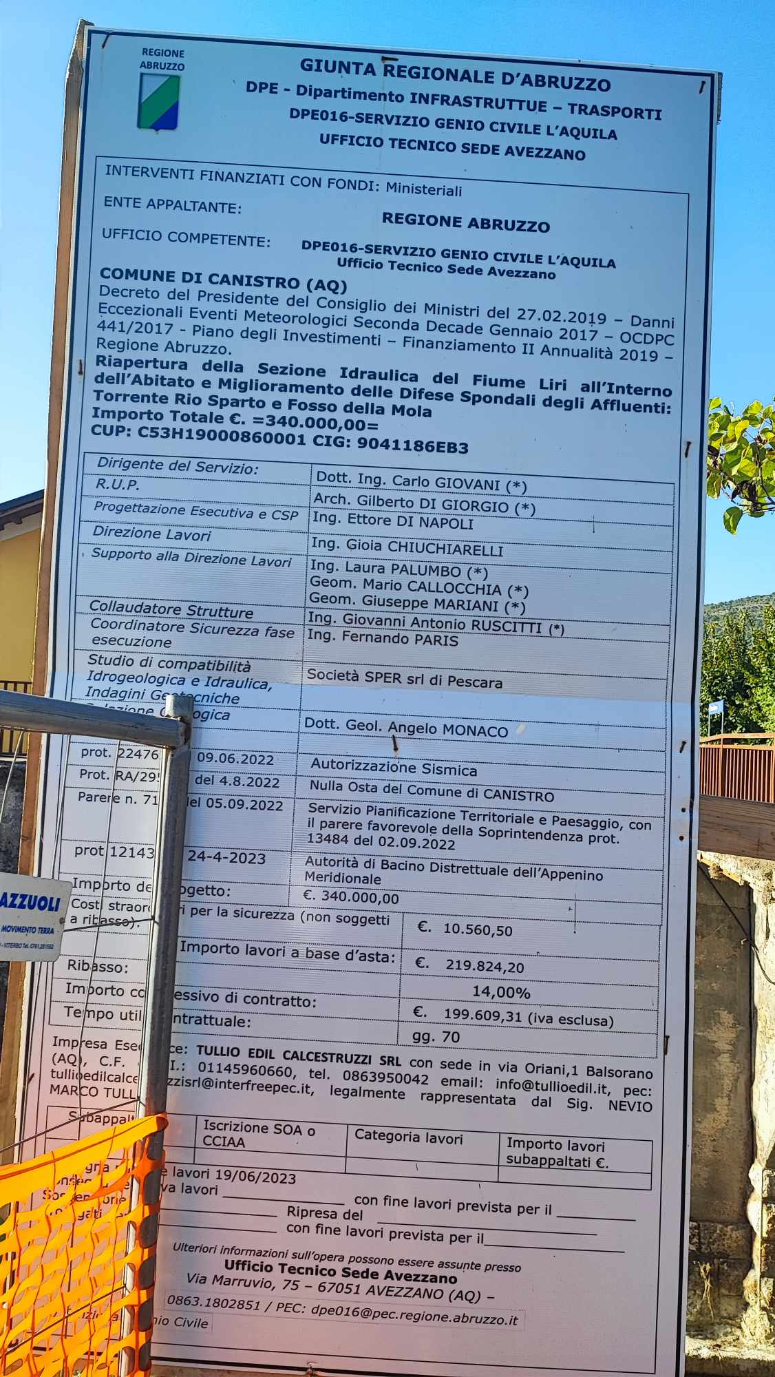 CANISTRO – Sono in corso i lavori di messa in sicurezza e miglioramento delle difese spondali degli affluenti del Liri Rio Sparto e Fosso della Mola che sfociano nel Liri. L’importo lavori è di 340 mila euro provenienti da fondi ministeriali. Di seguito le specifiche: