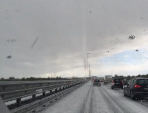 Forti temporali grandinigeni e nevischio sulla A24 tra Carsoli e Valle del Salto