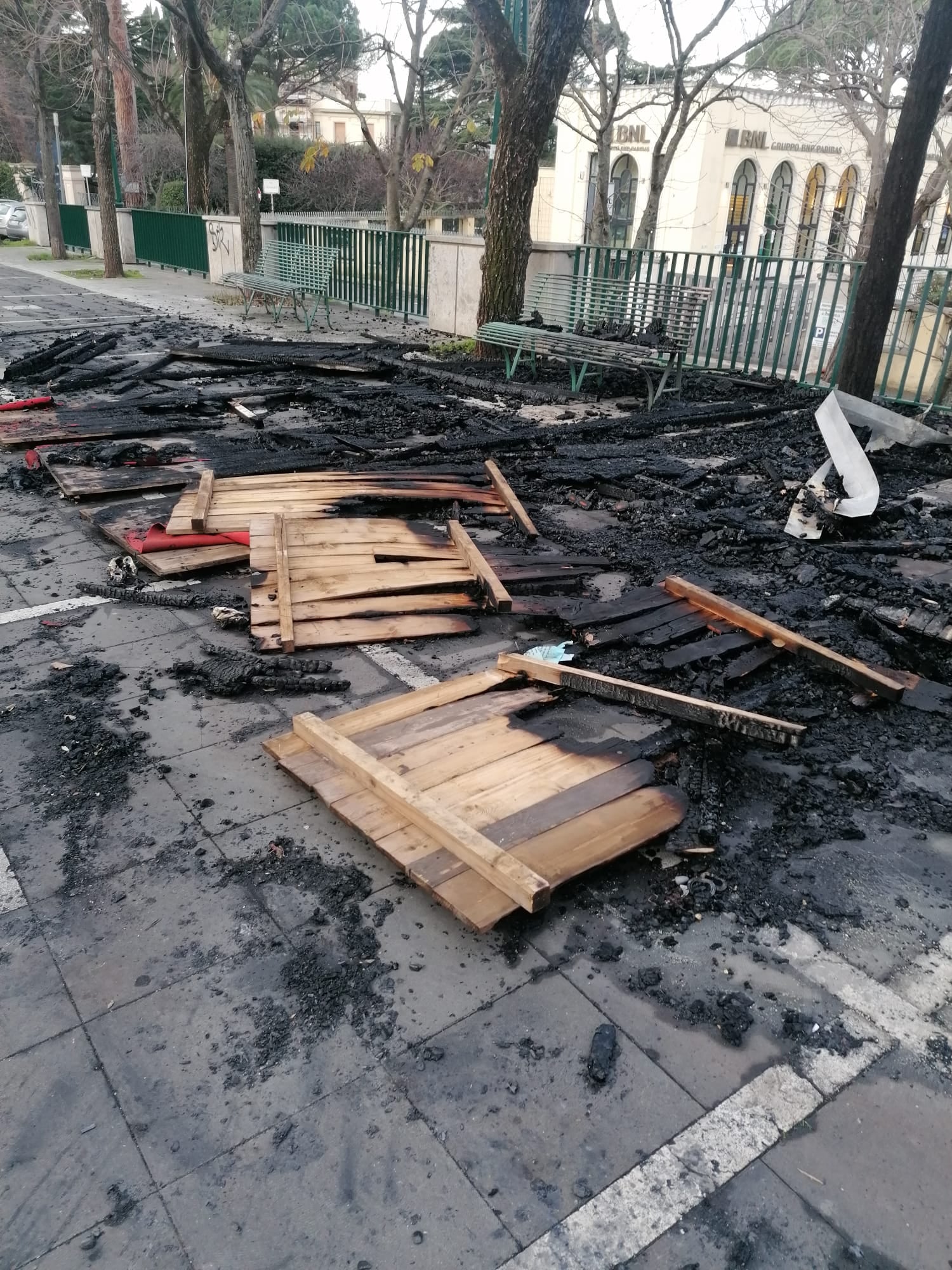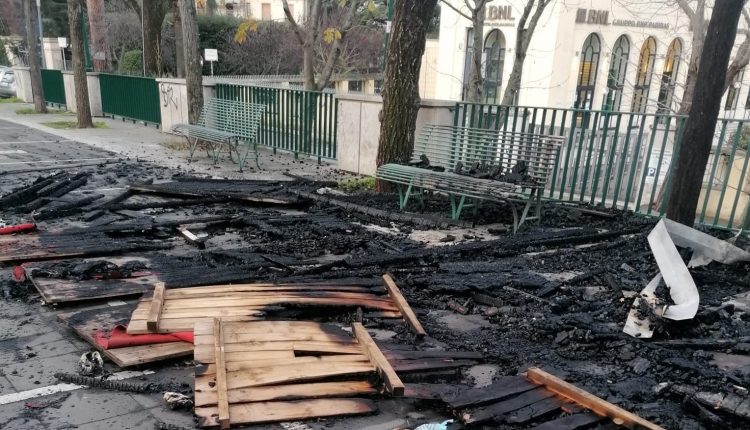 Frascati, atto vandalico nella notte: bruciate due casette di legno in pieno centro