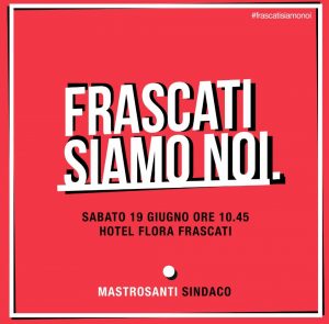Frascati – “E’ con lo slogan ‘Frascati siamo noi’ che sarà presentata alla cittadinanza la candidatura a Sindaco di Frascati di Roberto Mastrosanti. L’appuntamento, aperto ai cittadini, le associazioni, il tessuto produttivo e la stampa, è per Sabato 19 giugno 2021 alle 10.45 presso l’Hotel Flora di Frascati”.
