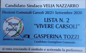 Ho deciso di entrare a far parte di “Vivere Carsoli” per dare un contributo al paese che mi ha adottata con tutta l’efficienza, la serietà e la disponibilità. Ringrazio anticipatamente tutti coloro che vorranno darmi il loro sostegno in questa difficile e appassionata prova.