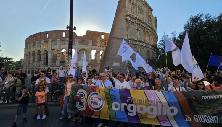 ROMA – Quasi 40 carri, ognuno con altoparlanti a tutto volume e un assordante sottofondo di musica tecno o pop. Già centinaia di migliaia di persone in piazza nelle prime ore del pomeriggio. E una marea umana e colorata in marcia da pochi minuti, diretta verso il Circo Massimo. È un gay pride dai numeri enormi quello partito nel pomeriggio di oggi, sabato 15 giugno, a piazza della Repubblica a Roma. La parata, tradizionalmente dedicata al pieno riconoscimento dei diritti della comunità Lgbtqia+, quest’anno celebra il 30ennale della prima manifestazione del pride a Roma.