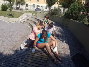 Carsoli – They are of different nationalities, they speak different languages but they are all united under a single common denominator: make themselves useful and give a tangible and concrete sense to this international field that has recently started and organized by the association “The world in a room” . They started already with the bus shelters, taking care to revive the wooden uprights and to erase, with elbow grease and thinners, the writings that obscured the petrochemical walls in plexigas, now bright and transparent again. And this morning the volunteers from the world have polished the public gardens, giving life to a task of reclamation and general reorganization. The students focused in particular on the maintenance of seats in the amphitheater area, and public benches. But in addition to the social usefulness of their action, the importance lies above all in the message that young people today are able to launch within a community. They read the previous publications, which Fosca Di Natale (volunteer of the field of our house) has provided to translate into English to make it read to other students. The importance of street furniture and the dignified hold of a space like the public gardens that are the living room of a city is certainly a note to be noted. Well, smart guys and good work.