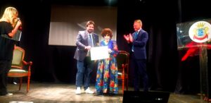 Questo incontro non era casuale perché oggi ricorre il suo 95esimo compleanno e per tale motivo tutti i cittadini le hanno voluto augurare buon compleanno con una premiazione al teatro.