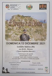 Si terrà domenica 12 dicembre la performance site specific danza teatro e voce a Collalto Sabino, uno spettacolo a cura del Teatro delle condizioni avverse con Lidia di Girolamo e Diletta Brancatelli. Organizzato insieme all’Associazione culturale FonteOro, l’evento si terrà presso piazza Guglielmo Marconi alle ore 09.30.