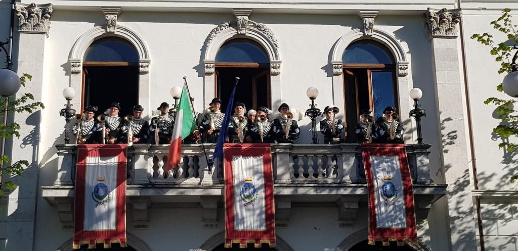 Sono previste circa 4mila persone nell’abbraccio di Piazza dell’Obelisco che terranno il fiato e gli occhi levati fino al momento culminante, quando il prelato impartirà la benedizione con il quadro del Volto Santo dallo storico balcone prospiciente la Fontana dell’Obelisco, che farà zampillare oltremodo gli schizzi d’acqua, in un tripudio di campane e di note musicali del locale concerto bandistico e delle chiarine municipali, mentre i bambini e le bambine eleveranno al cielo i tradizionali dolcetti del cavalluccio e della colombina, confezionati dalle Monache di clausura.