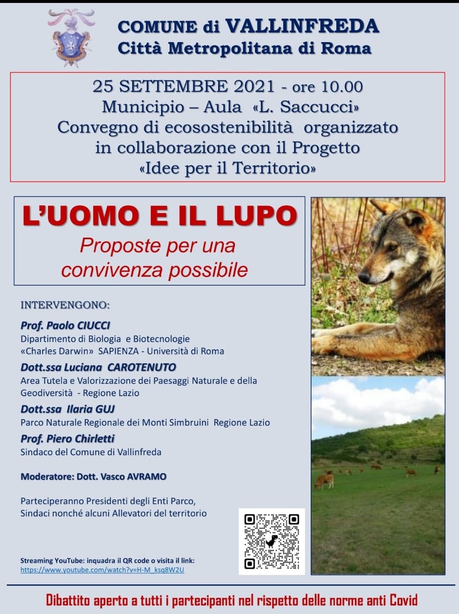 Vallinfreda – C’è grande attesa per un interessante convegno sul tema: “L’uomo e il lupo” – Proposte per una convivenza possibile. L’appuntamento è per sabato 25 settembre 2021 alle ore 10.00 presso l’Aula “Saccucci” presso il Municipio di Vallinfreda.