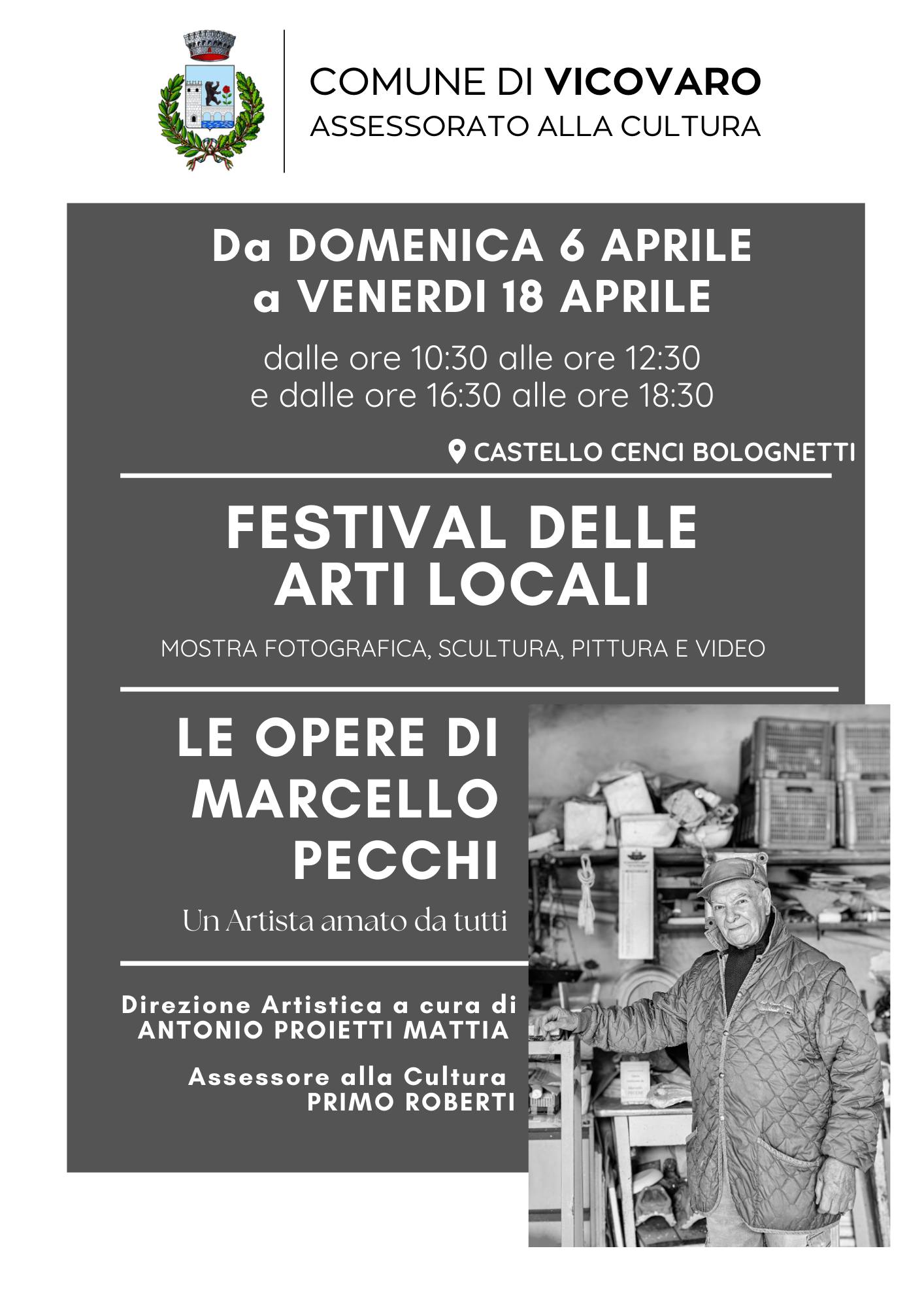 Il festival voluto dall’assessore alla cultura Primo Roberti, rappresenta un’opportunità unica per valorizzare gli artisti locali, con un’attenzione particolare ad artigiani, scultori e pittori che con il loro talento arricchiscono il patrimonio culturale del territorio. Questa prima edizione è interamente dedicata a Marcello Pecchi, un artista che ha lasciato un’impronta significativa nella comunità vicovarese.