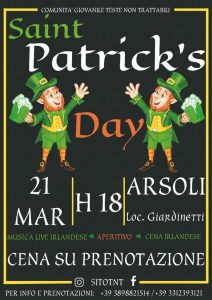 Arsoli – La comunità giovanile di Arsoli TesteNonTrattabili organizza per la prima volta il Saint Patrick’s Day.