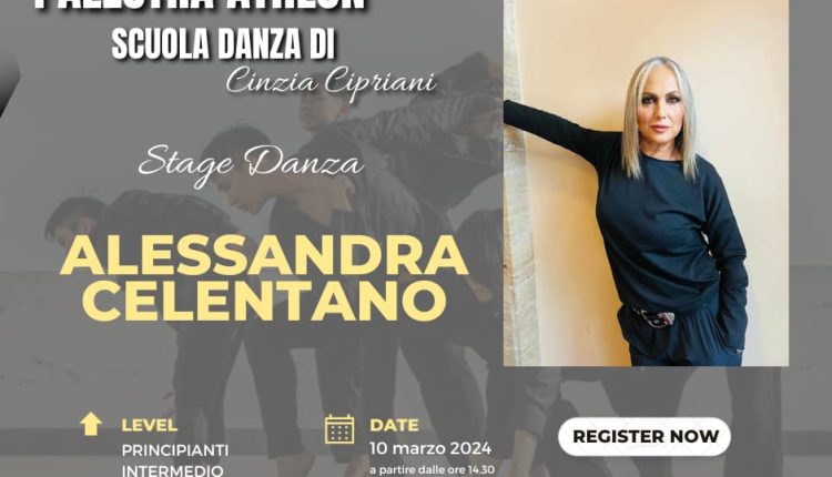 Carsoli –  Un’altra grande artista della danza verrà ospitata dalla scuola di danza della Maestra Cinzia Cipriani, con sede presso la Palestra Athlon. L’artista di cui parliamo è Alessandra Celentano che,