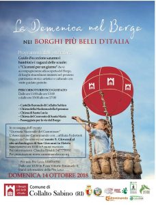 Collalto Sabino – C’è grande attesa nel bellissimo borgo di Collalto Sabino in provincia di Rieti ai confini tra Lazio e Abruzzo per la “Domenica del Borgo”. Una interessante iniziativa il cui appuntamento è per domenica 14 ottobre p.v.. Si tratta di una esperienza da vivere in uno dei borgi più belli d’Italia, con iniziative di grande interesse come i ragazzi delle scuole che diventeranno “ciceroni per un giorno”. Sarà cura dei più giovani dunque spiegare ai visitatori, la storia e la cultura di Collalto Sabino, ripercorrendo le tappe più salienti e significative del passato. Questo per apprezzare il presente, e viverlo con escursioni guidate, passeggiate in un percorso turitstico guidato e selezionato.