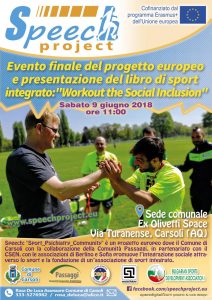 Redazione – Domani 9 giugno presso la sede provvisoria del Comune di Carsoli (ex mael), si svolgerà l’ evento finale del progetto europeo “speech project”, nel quale il Comune risulta essere ente capofila in collaborazione con il team dello Csen, Comunità passaggi e associazioni bulgare e tedesche a trattare l”inclusione sociale attraverso lo sport integrato. “Domani -spiega l’assessore Rosa de Luca in una nota – avremo modo di raccontare le tappe di questo progetto che è durato unanno e mezzo e tutte le belle esperienze vissute, dagli incontri di workshop a Carsoli, alle giornate in cui i ragazzi sono andati a berlino e alla realizzazione di un libro dedicato alle metodologie di sport integrato per il benessere dei cittadini, parleremo anche della possibilità di creare un’associazione di sport integrato sul territorio..per il nostro comune è un momento importante di confronto e sperimentazione”. Nella nota, sindaco, assessore proponente e amministrazione tutta invitano a partecipare.
