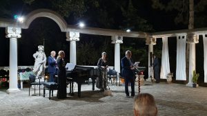 Saverio Fiz Perez. L’incontro è stato moderato dal giornalista Ruggiero Capone. A seguire, in alternanza alle fasi conviviali degustative, sempre nella suggestiva cornice del ninfeo, gli ospiti hanno assistito ad un bellissimo concerto di musica classica, con alternanza di esibizioni: della concertista Beatrice Zoccali, della voce di mezzosoprano Svetlana Spiridova e con un intermezzo poetico di Lamesta Krebel. La mezzanotte in punto è stata salutata con dei fuochi artificiali che hanno reso l’atmosfera ancorpiù intensa. (Press Office & Media Relations Green Party Annuale 2019)