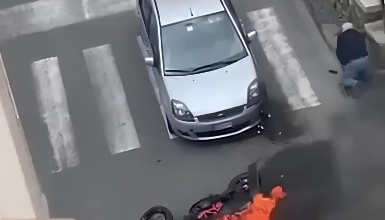 Grave incidente nel centro di Subiaco, moto alle fiamme dopo l’impatto con autovettura