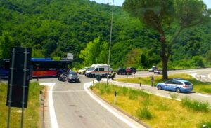 Grave incidente tra moto e auto in uscita dell’A24 Vicovaro Mandela, intervenuti i soccorsi