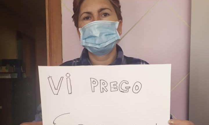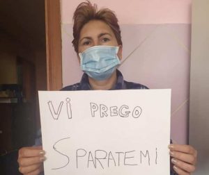 Mascherina ed un cartello di forte impatto: vi prego sparatemi.