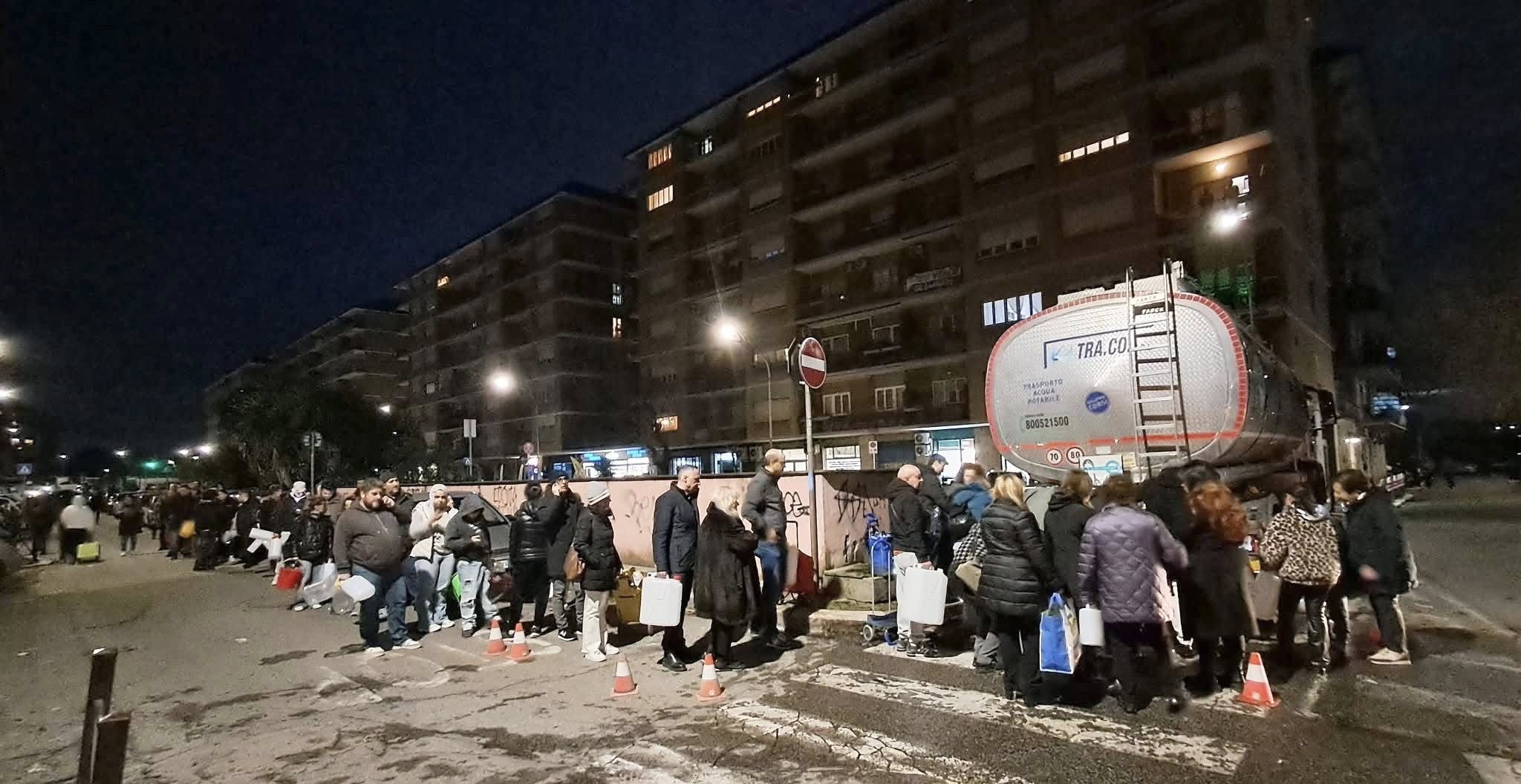 Nel frattempo, la presenza delle autobotti è diventata un punto di riferimento per il quartiere. Taniche, bottiglie e carrelli alla mano, molti residenti raccontano ore di attesa e una gestione non sempre semplice dei flussi. «Capisco l’emergenza, ma servirebbe più organizzazione», commenta una residente della zona Malatesta. «Ci sono persone anziane che fanno fatica a stare in fila così a lungo».