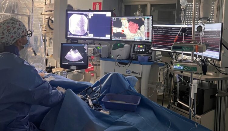 Teramo. All’ospedale di Teramo è stata eseguito un intervento eccezionale e molto raro: un’ablazione transcatetere della fibrillazione atriale su una paziente affetta da situs viscerum inversus con destrocardia, una rara anomalia congenita in cui gli organi interni sono disposti a specchio rispetto alla loro posizione abituale.