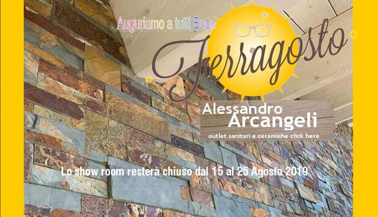 Carsoli – Dopo una lunga stagione operativa la Alessandro Arcangeli Outlet Sanitari e Ceramiche di Carsoli annuncia la chiusura per ferie del proprio show room. Dal 15 al 25 agosto 2019. Dopodichè si tornerà nuovamente operativi pronti per ogni esigenza della clientela. Nel contempo l’azienda rivolge alla gradita clientela e a tutti gli amici un caro augurio di sereno ferragosto!