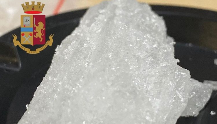 All’interno, distribuiti sul tavolo della cucina ed in parte celati all’interno dei cassetti dei mobili presenti, gli agenti della Polizia di Stato hanno trovato diverse confezioni contenenti complessivamente 102 grammi di sostanza stupefacente del tipo metanfetamina, presentata nella tipica forma a cristalli dello “shaboo”.