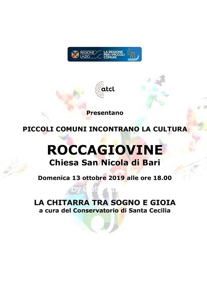 Roccagiovine –  Una interessante iniziativa caratterizza il bellissimo borgo di Roccagiovine. Nel contest di un progetto della Regione Lazio dedicato ai piccoli comuni l’appuntamento è per domenica 13 ottobre 2019 con l’esibizione di  un gruppo di chitarristi del Conservatorio di Santa Cecilia. Il concerto si svolgerà nella suggestiva cornice della Chiesa di San Nicola di Bari.