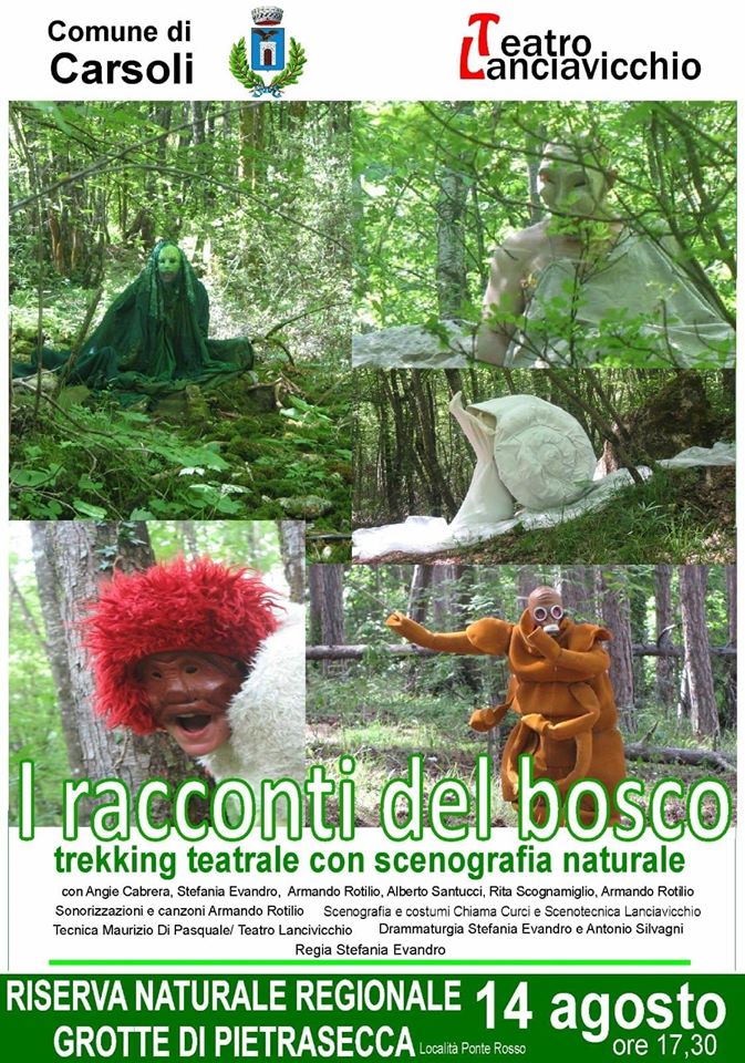 Carsoli – “Venerdì 14 agosto alle 17,30 l’incantevole sfondo della Riserva naturale Grotte di Pietrasecca farà da scenografia allo spettacolo itinerante “I Racconti del Bosco” promosso dall’Amministrazione Comunale di Carsoli e messo in scena da Teatro Lanciavicchio e Teatro Stabile d’Abruzzo. L’allestimento vede attori, musicisti e spettatori immersi nella scenografia naturale, e in questo scenario storie fantastiche e mitologiche si incontrano con la vita degli abitanti del bosco: fiume, alberi, pietre, animali, microrganismi solitamente invisibili o troppo piccoli per lo sguardo di un passante vengono messi a fuoco dalla lente dell’azione teatrale.