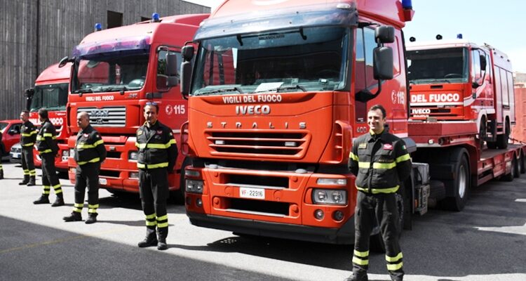 Si tratta di un’autopompa serbatoio e tre autobotte pompa provenienti dai Comandi Vvf di Torino, Alessandria, La Spezia e Monza.