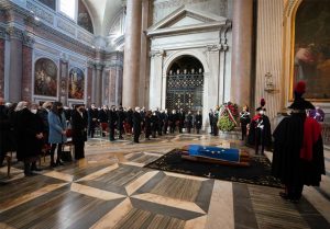 Ieri circa 4mila persone hanno reso omaggio a Sassoli recandosi alla camera ardente allestita nella sala della Protomoteca del Campidoglio per tutta la giornata.