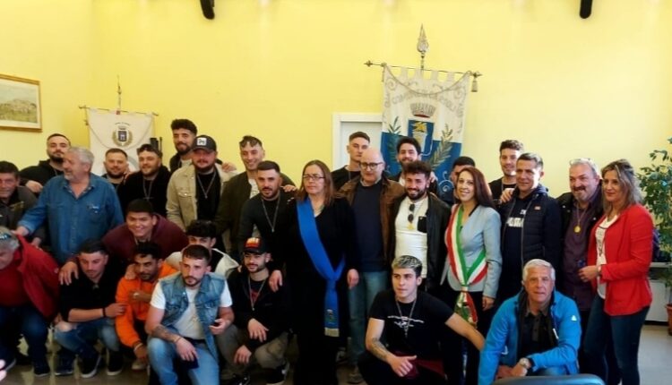 Carsoli – emozione e clima di Grande entusiasmo nel pomeriggio odierno a Carsoli. L’amministrazione comunale ha ricevuto tutta la squadra ASD Carsoli con tutti i dirigenti per festeggiare insieme la vittoria del campionato di terza categoria. Il sindaco Velia Nazzaro ha consegnato al presidente Carlo di Giovanni una targa di riconoscimento e ricordo a nome di tutta la comunità per il meritato traguardo raggiunto in campo. Come noto la squadra locale è stata caratterizzata da una serie di successi con un numero prevalente di vittorie in campo sia nei gironi di andata che in quello di ritorno. Il presidente Carlo di Giovanni con emozione a ringraziato il sindaco e l’amministrazione comunale per il sostegno che è stato riservato alla squadra punto di Giovanni ha anche ringraziato tutti i tifosi che nel corso dell’intera stagione hanno fatto sentire la presenza massiva in campo e di sostegno per l’avanzata della squadra. Siamo onorati ha affermato il sindaco Velia Nazzaro di annoverare calciatori dirigenti e collaboratori che hanno saputo regalarci nel corso di tutto l’anno grandi emozioni sia nel nostro stadio che nelle partite fuori casa. Tutti hanno lavorato per il comune obiettivo, la vittoria del campionato e l’avanzata in seconda categoria costituisce un lustro e un vanto per tutto il nostro territorio.” Presenti all’evento anche l’assessore Lorenza Muzi il presidente del Consiglio Chiara Cimei, l’assessore allo sport Salvatore Callipo ed altri amministratori comunali. Tutto si è svolto in un clima di grande entusiasmo ed ora Avanti tutta per la seconda categoria.