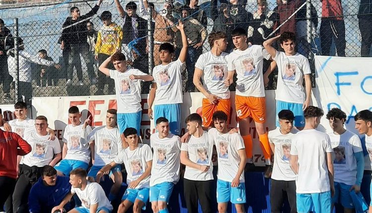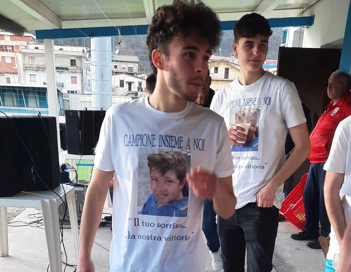 CARSOLI – Il Carsoli under 19 oggi vince il campionato. Momenti emozionanti allo stadio Marcangeli che ha visto in campo una squadra brillante disputare la partita contro il Trasacco vinta 3 a 1. L’aggiudicazione è avvenuta con una giornata di anticipo. Reti di Jano e doppietta di Fabiani. Lo stadio era strapieno di giovani. E dopo il fischio finale i ragazzi della squadra prima ed altri tifosi poi, hanno indossato la maglia dedicata ad Edoardo Marcangeli: “Campione insieme a noi, il tuo sorriso la nostra vittoria”.