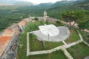 Vivaro Romano – Il Castello Borghese è costruito direttamente sulla roccia che caratterizza lo sperone di Colle Gennaro (757 metri sul livello del mare), propaggine del Monte Croce.