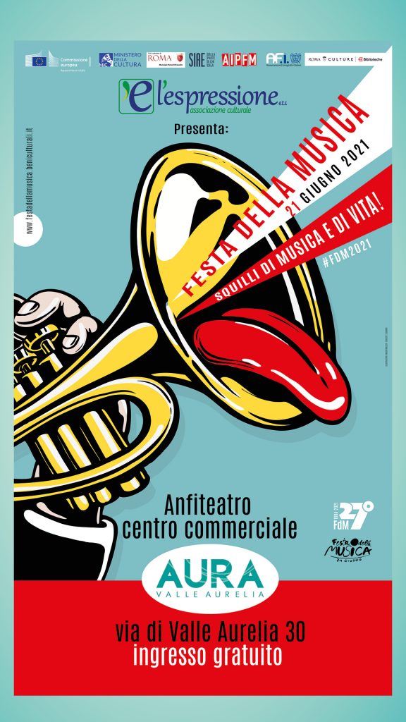 Roma – Il 21 e il 22 giugno, in occasione della 27° edizione della Festa della Musica, il Centro Commerciale AURA di Valle Aurelia, con il patrocinio del Municipio XIII, ospita l’Associazione Culturale Espressione E.t.s. per due giornate all’insegna della musica, dell’arte e del teatro.