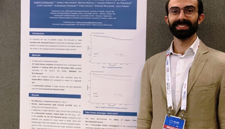 A rappresentare al consesso mondiale americano la struttura organizzativa e di coordinamento dei trapianti è stato il dott. Alberto D’Annunzio che ha illustrato uno studio dal titolo “Impact of the deceased donor’s risk profile on recipient and kidney survival: a single-centre study” che, in sostanza, riguarda la sicurezza dei reni trapiantati al San Salvatore e che offre elementi originali per la valutazione della qualità di tali organi.