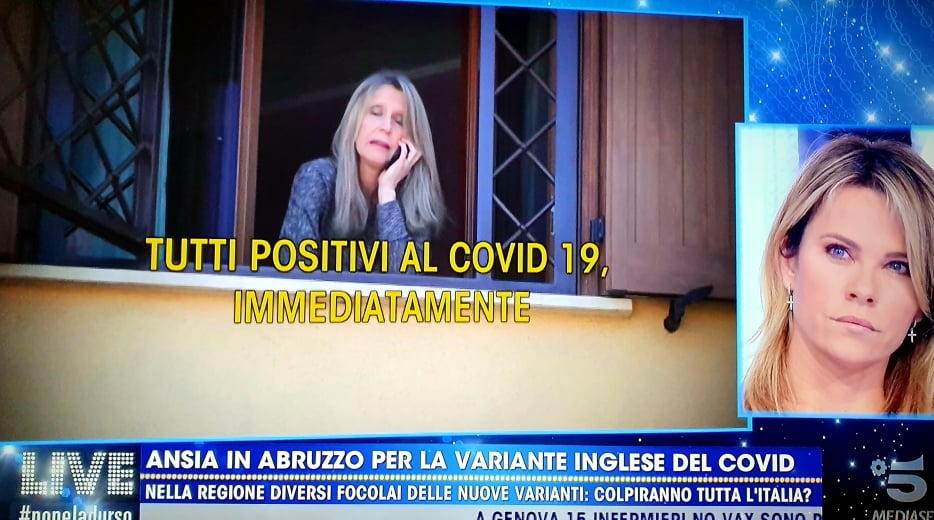 Nel corso della tramissione “Non è la D’Urso”, la troupe intervista anche l’avvocato Daniela Marcangeli che dalla finestra della sua casa spiega i fatti accaduti: un fulmine a ciel sereno ed in un attimo tutta la famiglia contagiata. Oggi fortunatamente tutti si sono negativizzati e perfettamente guariti.
