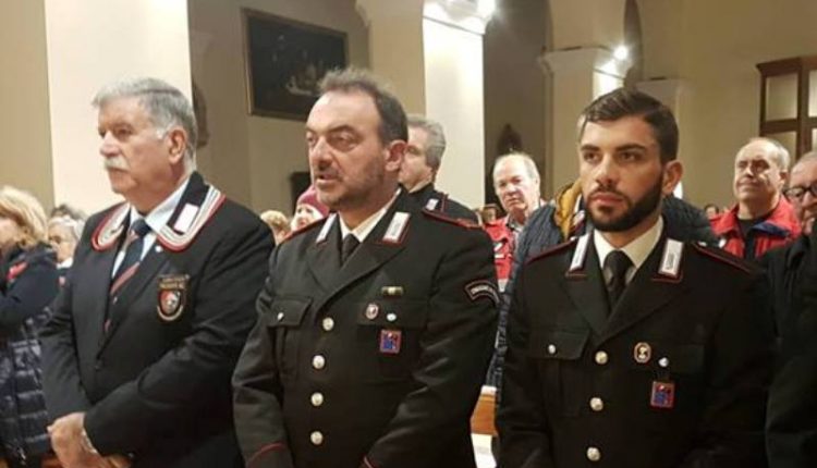 Nella foto al centro il M.llo Cicone durante una celebrazione della Virgo Fidelis nella Chiesa Parrocchiale di Santa Vittoria, affiancato dal presidente dell’Associazione Nazionale Carabinieri  Domenico Gregori e dal maresciallo Pietro La Torre.