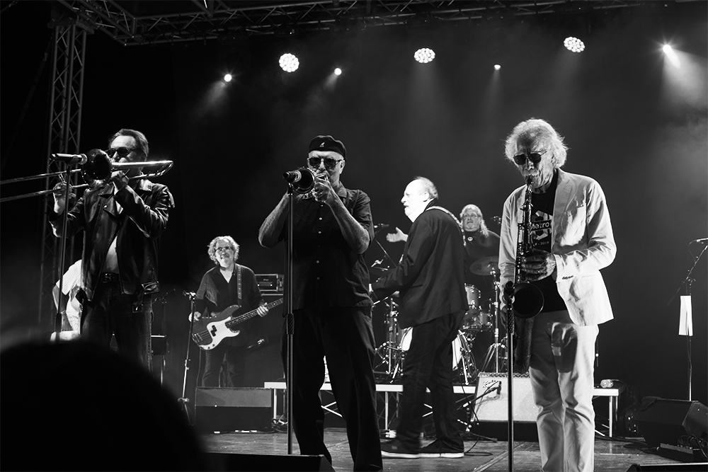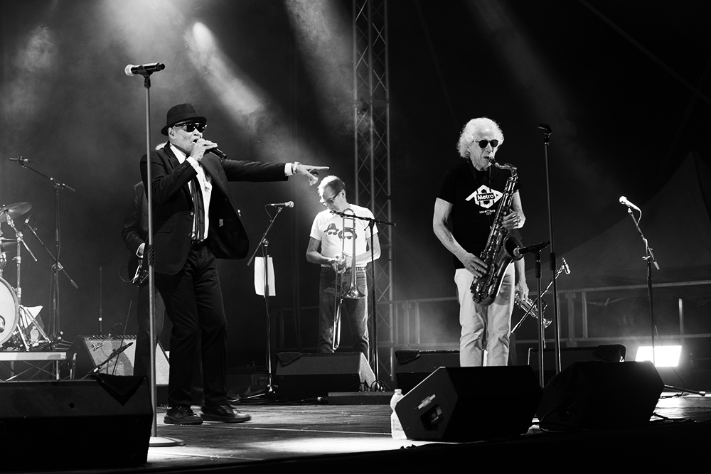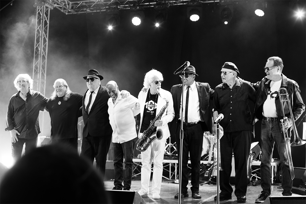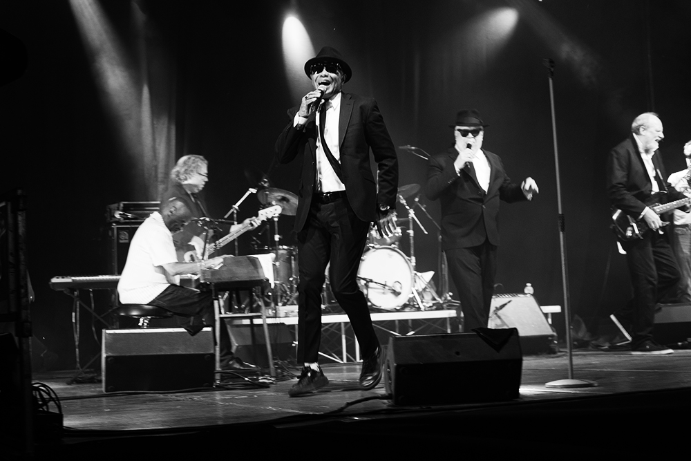 Una parte di quel mondo ha intrattenuto e divertito la platea del festival Concerti delle Abbazie a Castel Castagna (TE), nella splendida cornice del parco di Santa Maria di Ronzano. Dall’originale film, il sassofonista Lou “Blue Lou” Marini (storica presenza al Saturday Night Live) e il trombonista Tom Malone hanno diretto la band, con Bobby “Sweet Soul” Harden e Tommy “Pipe” McDonnell nei panni degli scatenati fratelli del blues.