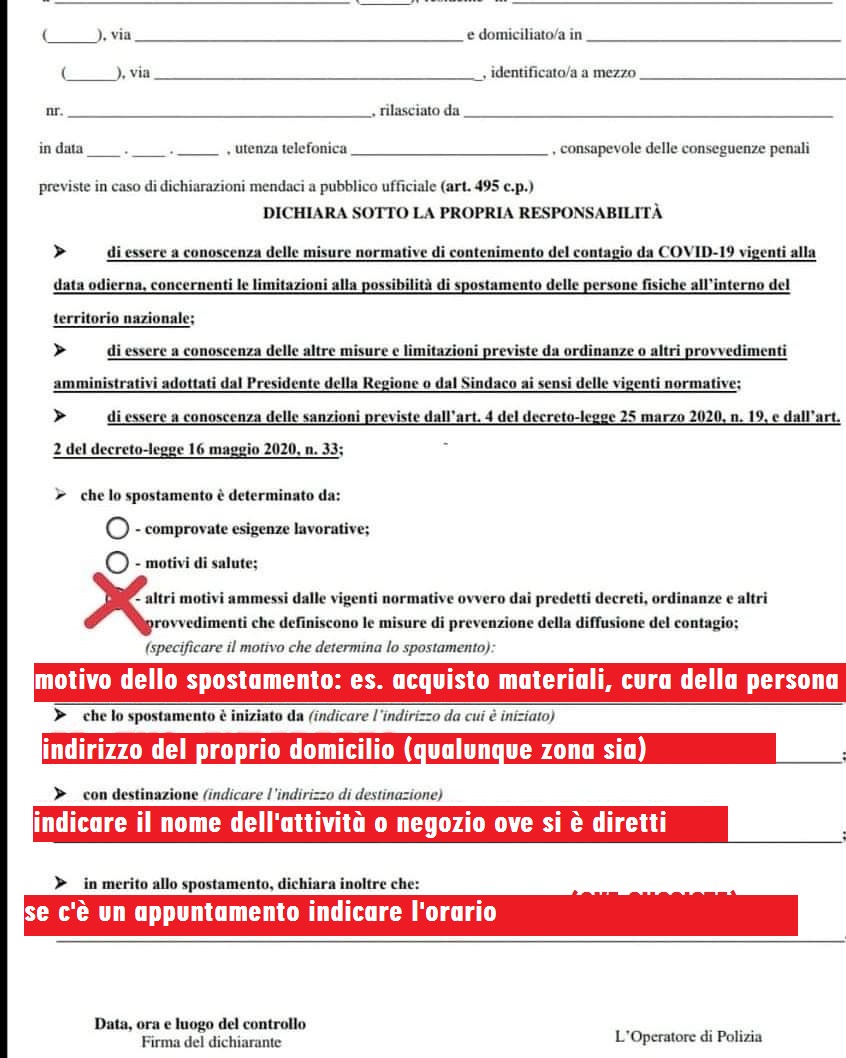 Redazione – Il modulo allegato nel link è aggiornato a questa mattina, è editabile in  PDF e va compilato secondo le istruzioni di seguito riportate. Questo modello è valido ovunque necessiti: