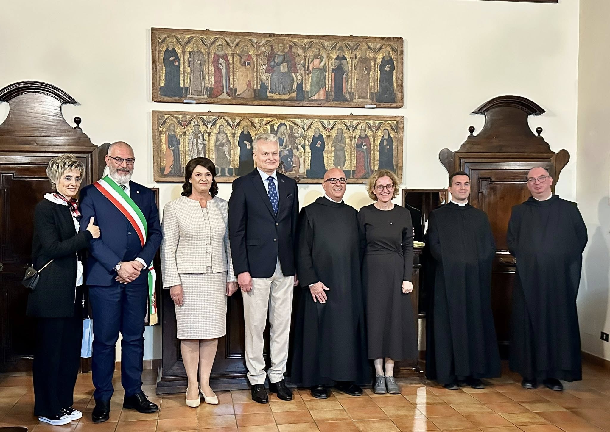 A conclusione della giornata, il Sindaco Rapone ha consegnato al Presidente Nausėda e alla consorte la medaglia di San Benedetto, simbolo del patrimonio storico, culturale e religioso di Subiaco.