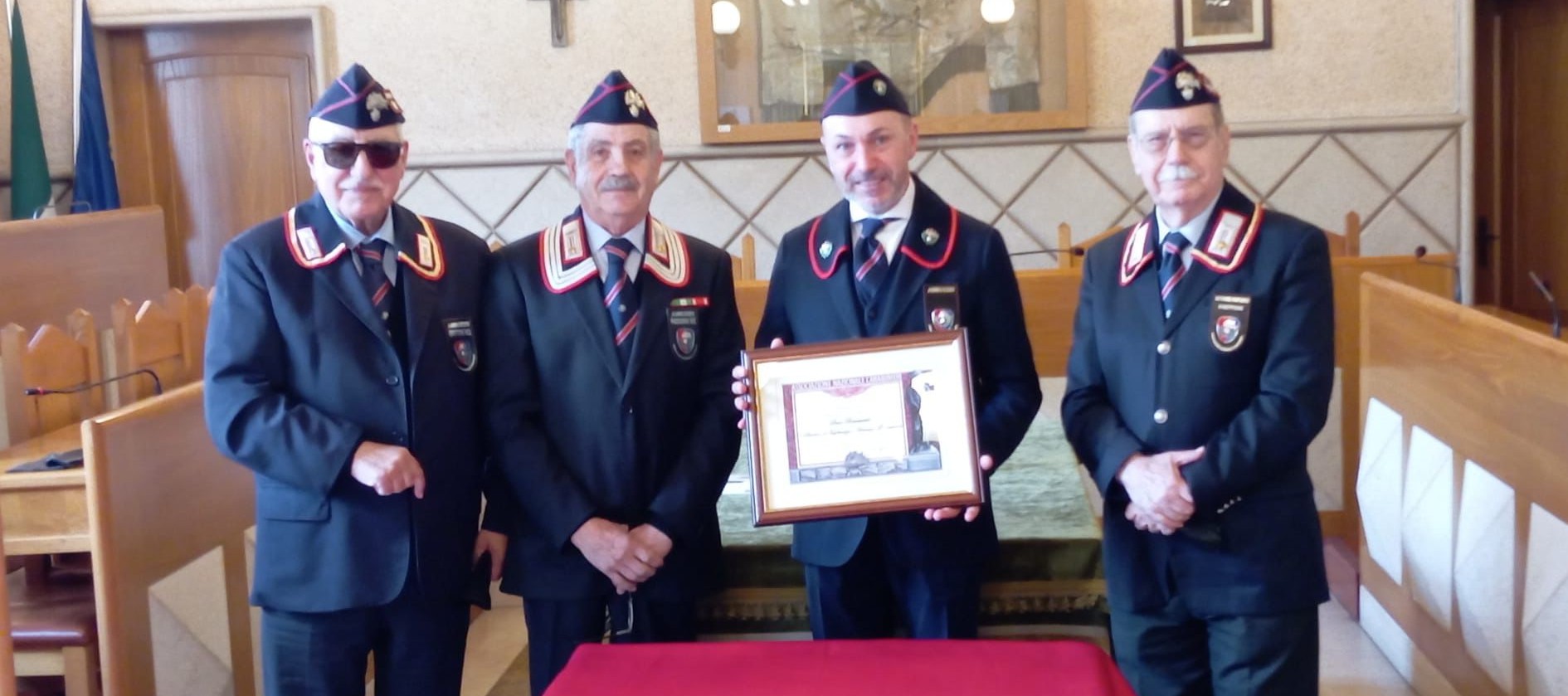 È stato il Presidente nazionale in persona, il Generale Libero Lo Sardo, a statuire la benemerenza per il Sindaco, su proposta del Presidente della locale Sezione il Brigadiere Capo Filippo Di Mastropaolo, incaricato di leggere le motivazioni.
