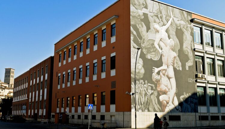 Rieti – Il Ratto delle Sabine e il Giudizio Universale sulla facciata laterale del Tribunale di Rieti. Uno splendido murale dipinto da Ozmo, Street artist famoso a livello internazionale che rende l’edificio giudiziario alquanto unico e suggestivo. Soddisfazione è stata espressa dal sindaco Daniele Sinibaldi.