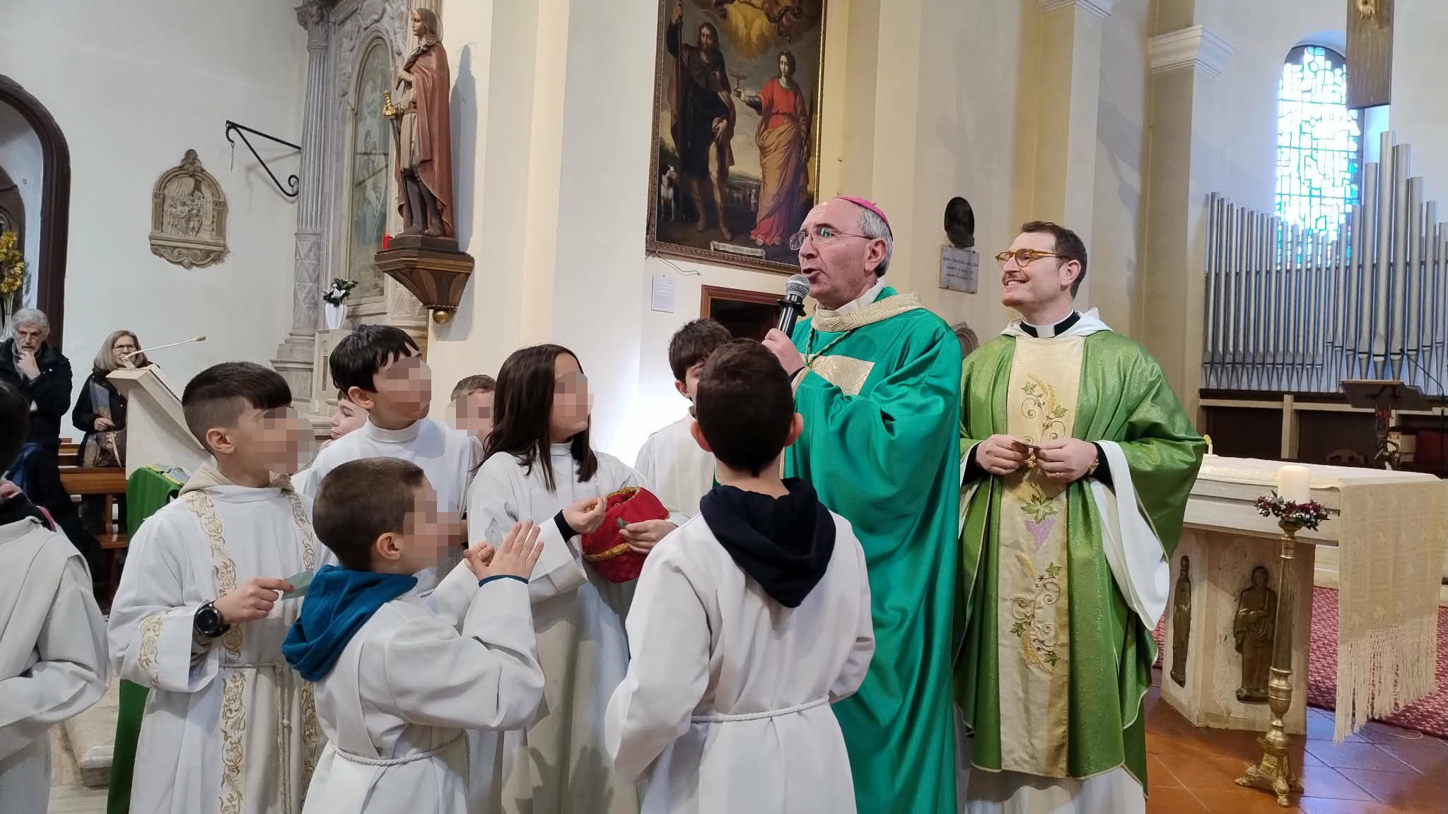 Il Vescovo ha poi coordinato l’estrazione della lotteria domenicale: ad ogni bimbo partecipante viene consegnato dai catechisti un numeretto, poi a fine Messa cinque premi estratti tra pupazzetti e giochi divertenti, ringraziando il parroco don Umberto Di Pasquale per la bellissima celebrazione liturgica.