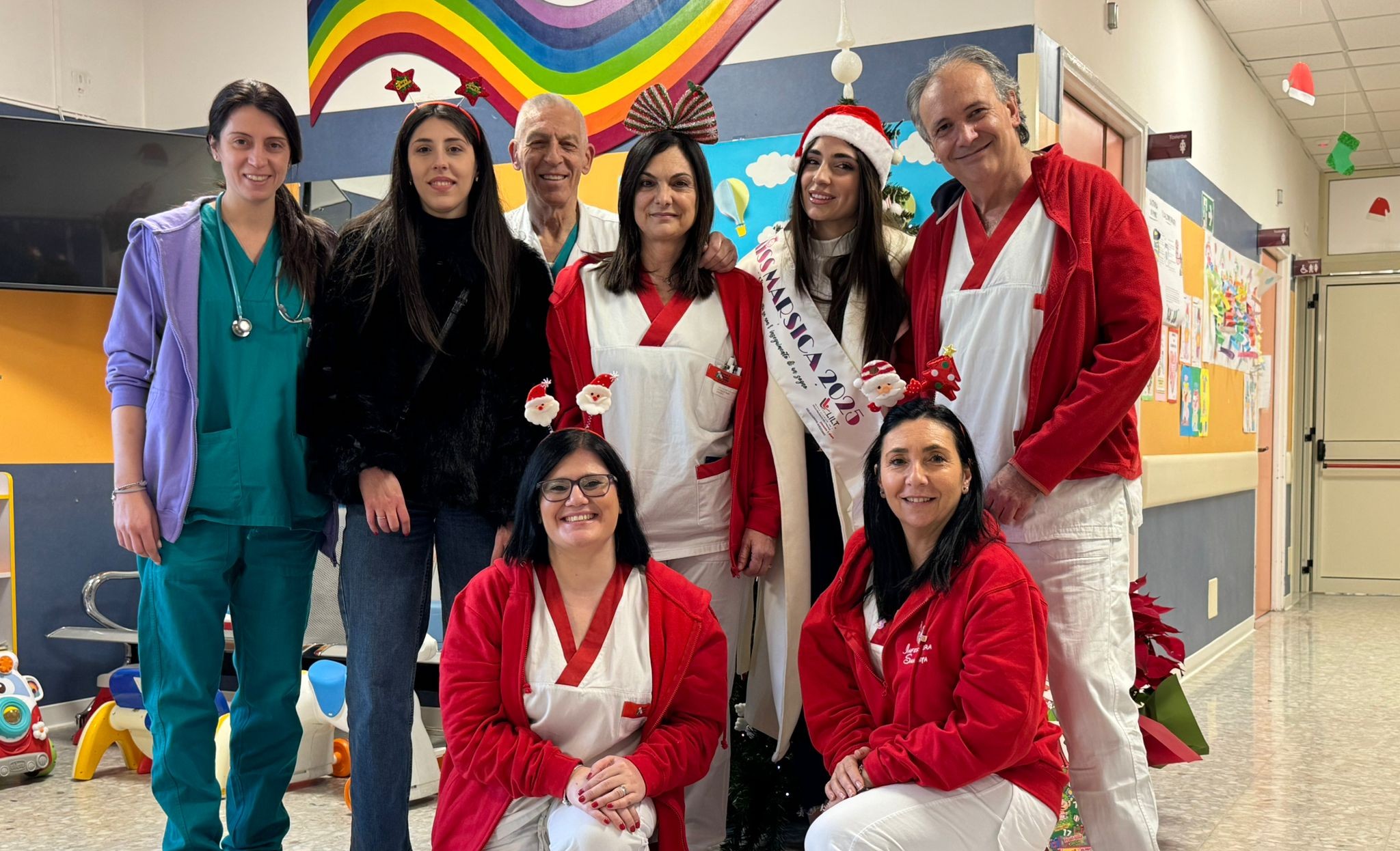 AVEZZANO AQ – Un pomeriggio di emozioni, sorrisi e vicinanza quello vissuto oggi, 30 dicembre, presso il reparto di pediatria ospedale Avezzano, dove Miss Marsica Ilaria Antonucciha fatto visita ai piccoli pazienti portando doni, dolciumi e libri. La giovane reginetta ha consegnato personalmente i regali ai bambini ricoverati, trasformando per qualche ora le corsie dell’ospedale in un luogo di festa e leggerezza.