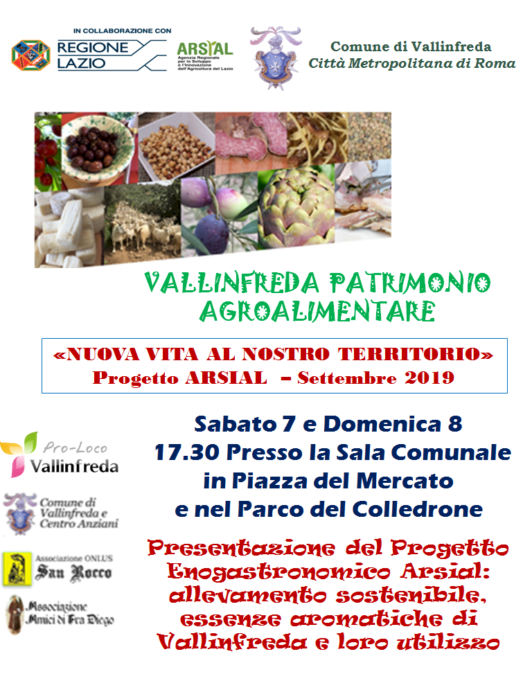 Vallinfreda – Sarà presentato ufficialmente sabato 7 e domenica 8 settembre 2019 l’importante progetto Arsial per il quale il Comune di Vallinfreda ha ottenuto uno specifico finanziamento. Si tratta di un percorso di sviluppo dell’enogastronomia territoriale supportato dalla Regione Lazio.  Le attività relative coinvolgeranno, oltre che gli allevatori, anche le scuole per un percorso di Sviluppo Sostenibile, e vedranno la partecipazione del paese alla prima manifestazione del “Saturday for Future” italiano il 28 settembre prossimo. L’appuntamento per saperne di più è per sabato e domenica alle ore 17.30 presso il Comune di Vallinfreda. Con il comune collaborano anche la Pro Loco Vallinfreda, il Centro Anziani, L’Associazione Onlus San Rocco, e L’associazione Amici di Fra Diego.  Ottima iniziativa. Bravi.