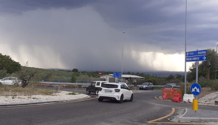 PASSO CORESE – Una impressionante tromba d’aria ed acqua temporalesca è stata avvistata dalla S.S.  Salaria nei pressi di Passo Corese. Il diluvio starebbe interessando le zone di Palombara – Montelibretti con allagamenti e violente raffiche di vento.