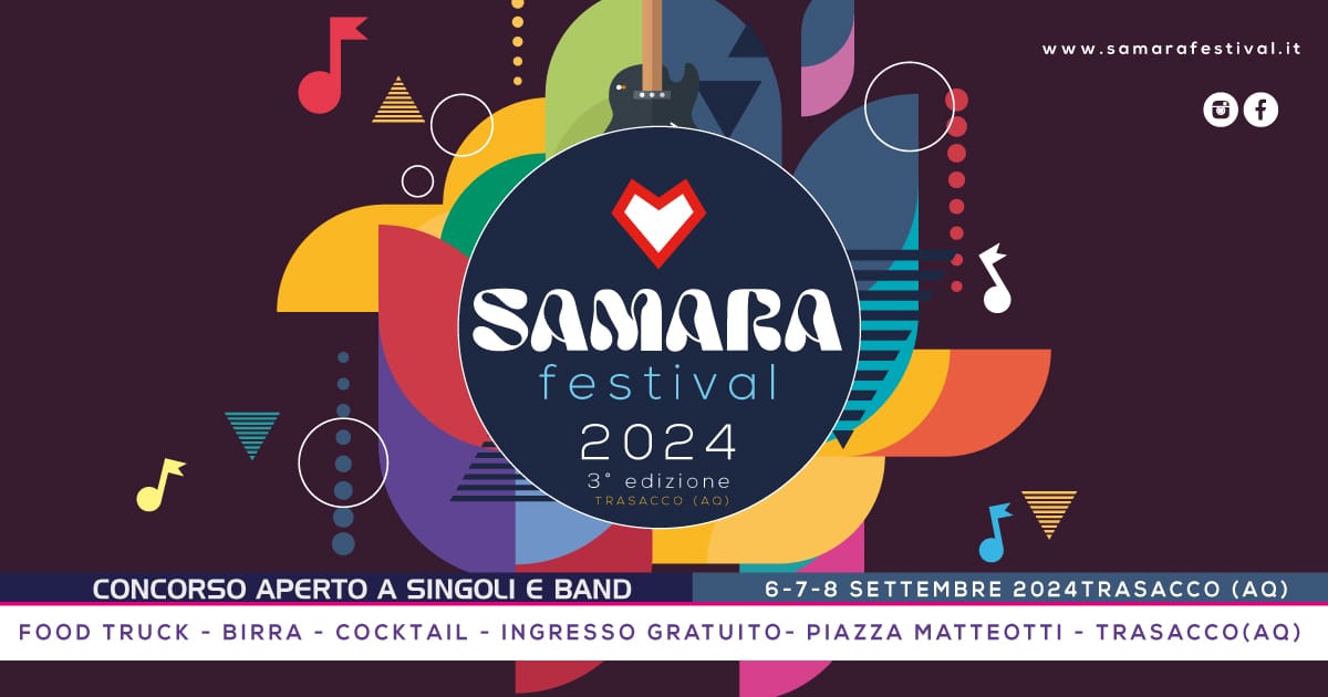 Trasacco (AQ) – Il Samara Festival, evento nazionale dedicato alla musica e all’arte inedita, torna per la sua terza edizione, dal 6 all’8 settembre 2024. Promosso dal Comune di Trasacco, il festival offrirà tre giornate intense di musica, letteratura, spettacoli teatrali interattivi e gastronomia.