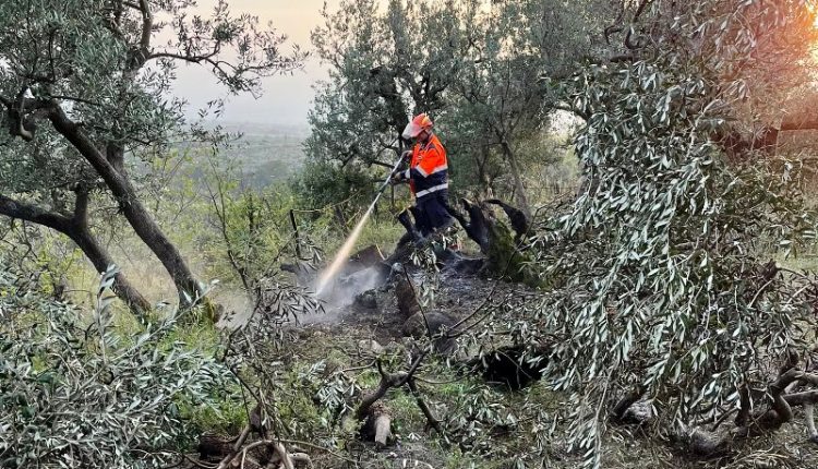 In fiamme un uliveto a Tivoli, Vigili del Fuoco e Protezione Civile di Guidonia evitano il peggio