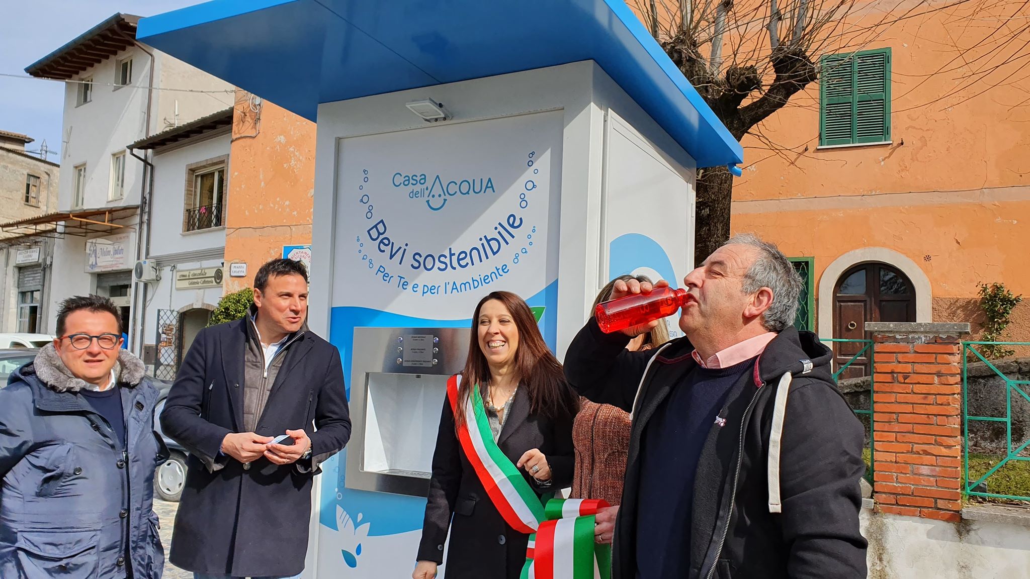 Il posizionamento dell’apparecchiatura è stato localizzato in piazza Colonna per il flusso idrico dell’acquedotto comunale e quindi non dalla sorgente Fonte Vecchia. In quel tratto infatti l’acqua corrente diretta è attiva 24 ore su 24 motivo per il quale il prelevamento non è relativo ad accumuli di nessun tipo. La casa dell’acqua contiene apparecchi interni di depurazione e di gassificazione che sono curati e manutenuti dall’azienda installatrice. L’apparecchiatura non da resto, motivo per il quale ci si deve munire di monete in relazione al quantitativo che si intende prelevare. Sarà attivato anche un servizio con una card prepagata che l’utente potrà ricaricare e quindi recarsi al prelevamento senza dover ricorrere all’utilizzo di monete. La prima card è stata simbolicamente consegnata al Comune di Carsoli dall’amministratore delegato della Società aquilana Aterno Gas Power Mauro Scopano.